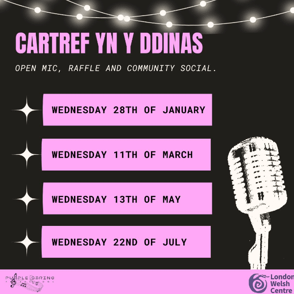Ar ôl y galw mawr, mae ein nosweithiau meic agored NÔL! Ydych chi’n chwilio am le i deimlo’n gartrefol yn y Ddinas Fawr?Ydych chi’n Gymro/Cymraes eisiau cwrdd ag eraill?Neu’n greadigol yn chwilio am fan diogel i roi cynnig ar farddoniaeth, canu neu gomedi?